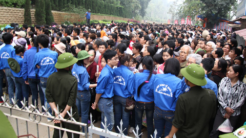 Dù diễn ra từ sáng sớm người dân đã đổ về xếp hàng đợi tới giờ được vào dâng hương.