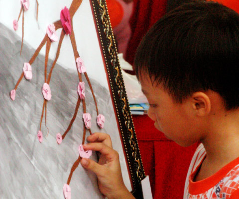 đóa hoa đào đều được các em gấp bằng nghệ thuật xếp giấy Origami truyền thống