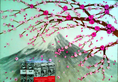Tác phẩm "Hoa anh đào vẫn nở" được hoàn chỉnh từ thành tố ban đầu là tranh nền vẽ cảnh núi Phú Sĩ ở Nhật Bản với cành hoa đào ở tiền cảnh. Những bông hoa của cành anh đào sau đó được các em thiếu nhi xếp gắn vào.