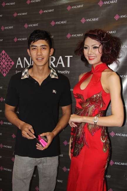 Người mẫu Hằng Nguyễn tham gia buổi khai trương cùng với những cô gái trong nhóm Smodel. Không chỉ tự tin tạo dáng với các bạn mà người mẫu còn rất nhiệt tình chụp hình rất tình cảm với á vương Trọng Tài và người mẫu Cao Vân Viên.
