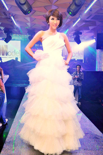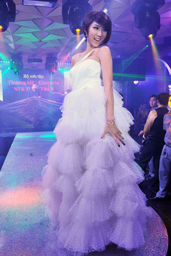 Trước đó, vào tối 6/6, người đẹp cũng xuất hiện trong sự kiện thời trang The 6 Night tại Model Club với một bộ váy cưới khác.