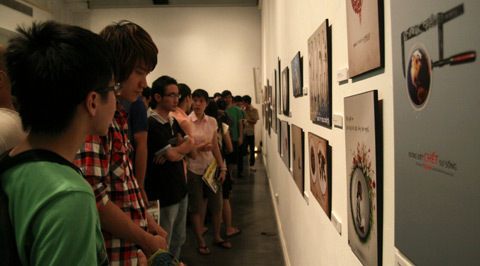 Sảnh trưng bày của viện Goethe chật cứng người tới tham quan, phần đông là các bạn trẻ. Có thể nói với tư duy sáng tạo của tuổi trẻ, khả năng triển khai ý tượng một cách độc đáo bằng công nghệ Digital, triển lãm sẽ là một không gian nghệ thuật hoàn toàn mới mẻ và bất ngờ cho khách tới tham dự.