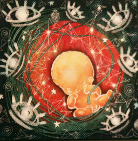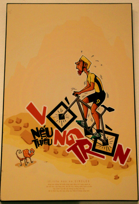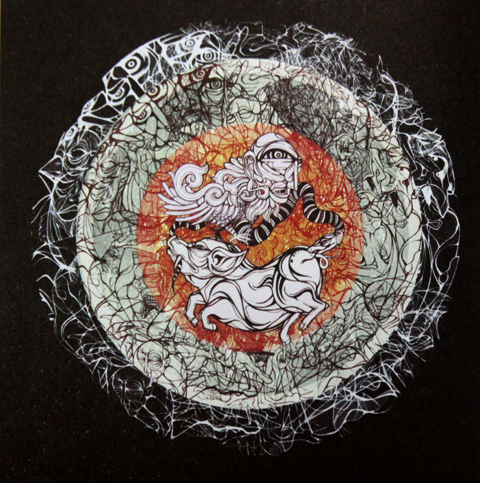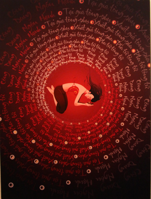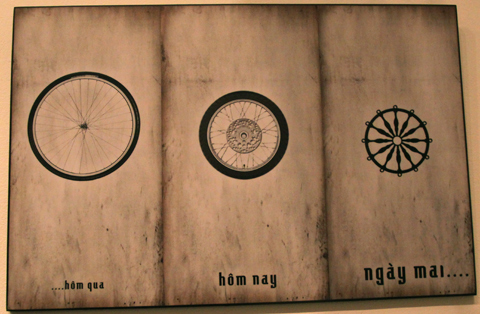 Đây là tác phẩm lấy ý tưởng từ vòng luân hồi trong giáo lý nhà Phật mà theo đó, nguyên nhân trói buộc trong luân hồi chính là "Tham - Sân - Si". Các đường nét chồng chéo, đan xen, dẫm đạp lên nhau ở vòng ngoài thế hiện sự lang thang trôi nổi của chúng sinh khi qua các kiếp sống nối tiếp nhau. Hướng vào trung tâm tạo điểm nhấn của bức tranh là 3 con vật tượng trưng cho "Tham - Sân - Si" : Con gà tượng trưng cho sự tham lam, con rắn cho sự đố kị và con lợn cho sự ngu tối.