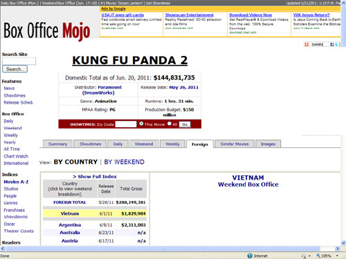 Panda 2". Tuy nhiên, Box Office Mojo chỉ mới cập nhật doanh thu của bộ phim này