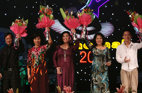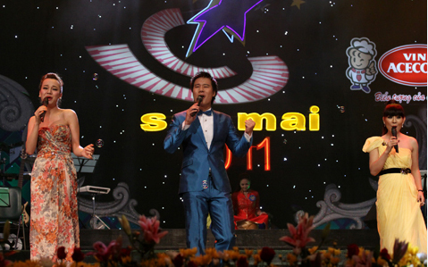 Hà Hoài Thu - Xuân Hảo - Lê Thị Mận - 3 ca sĩ đoạt giải nhất 3 dòng nhạc của Sao Mai 2009 góp mặt trong tiết mục mở màn.