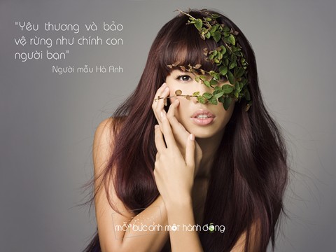 Và cô đã tham gia với thông điệp "Yêu thương và bảo vệ rừng như chính con người bạn"