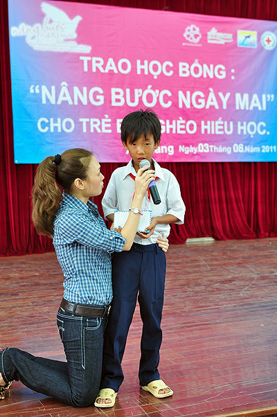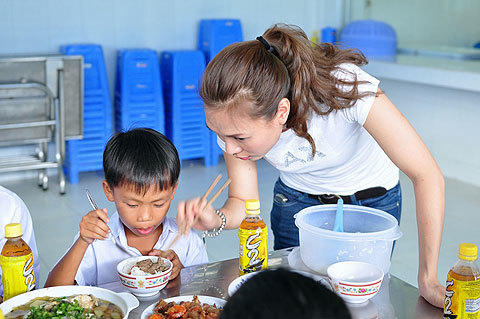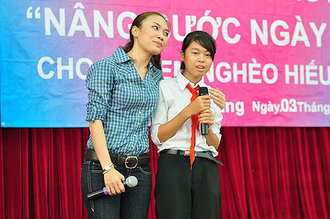 Không những vậy, trước khi các buổi lễ trao học bổng được tiến hành, cô ca sĩ Đà Nẵng còn chiêu đãi các em một bữa cơm ấm cúng