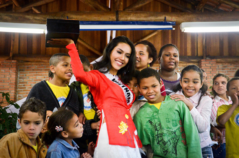 Ngày 1/9, Hoàng My - đại diện Việt Nam cùng với các thí sinh dự buổi trao quà lưu niệm cho tổ chức Alianca de Misericordia, một tổ chức chuyên giúp đỡ trẻ em đường phố và trẻ em nghèo ở Brazil. Trong chiếc áo bà ba màu đỏ thêu hoa sen vàng, Hoàng My khá nổi bật và nhận được sự quan tâm đặc biệt từ các em nhỏ.