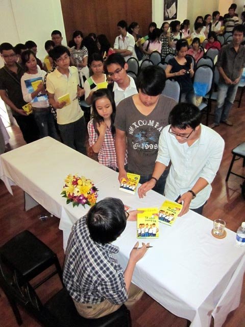 | Bạn đọc trẻ rồng rắn xếp hàng xin chữ ký nhà văn của tuổi mới lớn |