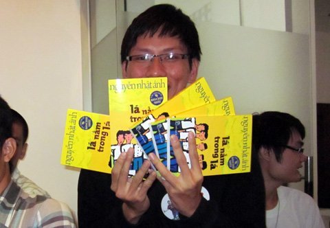 | Một độc giả mua một lúc 5 cuốn sách để xin được nhiều chữ ký |