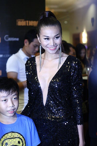 | Thanh Hằng đến dự tiệc sinh nhật của tạp chí Người nổi tiếng với một bộ đầm đen sang trọng |