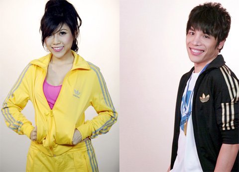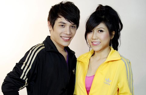 Hai ca sĩ tạo dáng với trang phục thể thao tại SEA Games