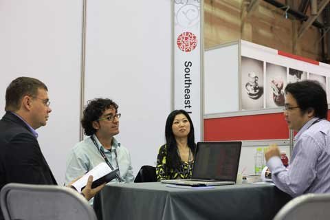 | Đạo diễn Phan Đăng Di đang trao đổi với 3 nhà sản xuất của dự án Southeast Loves tại LHP Busan 2011 |