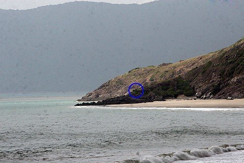 Đây là "điểm cao" (vòng tròn xanh) có thể giúp cho việc tiếp cận gia đình Brangelina dễ dàng hơn nhìn từ phía cổng chính của khu resort