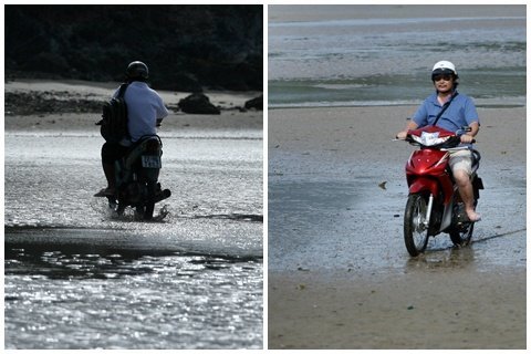 Vì thời điểm này nước đã rút nên có thể phóng xe qua biển dù không dễ lái cho
