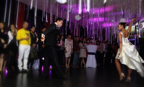 Cặp vợ chồng Hoa hậu Thùy Lâm đến dự "lễ cưới Hừng Đông" tại Hà Nội
