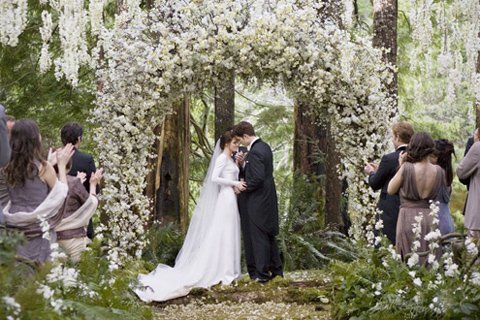 "Hừng đông: Phần 1" mở đầu bằng đám cưới đẹp như cổ tích của hai nhân vật chính, Edward và Bella, trong một không gian ngập tràn hoa trắng, không thể đẹp và cũng không thể lãng mạn hơn. So với những gì mà nhà văn Stephenie Meyer mô tả trong tiểu thuyết thì những cảnh quay đám cưới được Bill Condon tái hiện trên màn ảnh hoàn hảo và hấp dẫn hơn nhiều. Đây cũng là một trong những trường đoạn ấn tượng và được nhất bộ phim.