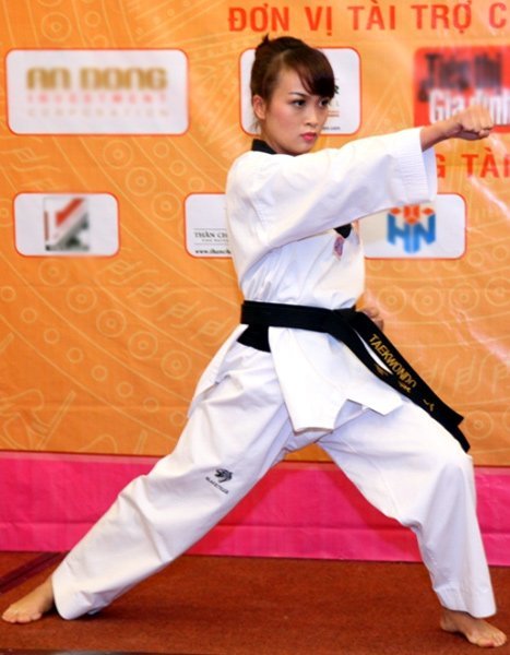 | Sầm Ngọc Ánh với tiết mục võ Taekwwondo. |
