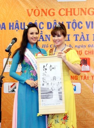 Viết thư pháp, thi thuyết trình, võ thuật, thổi đàn môi, têm trầu, hát chèo... các người đẹp dự vòng chung kết HH dân tộc đã có buổi tranh tài năng khiếu rất sôi động. Theo đó, BGK công bố danh sách 7 thí sinh xuất sắc nhất.