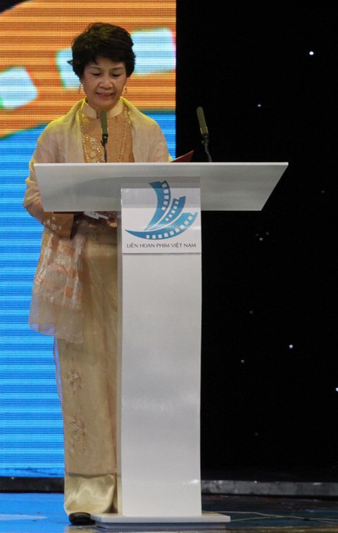 NBK Nguyễn Thị Hồng Ngát trên sân khấu lễ trao giải LHP VN. |