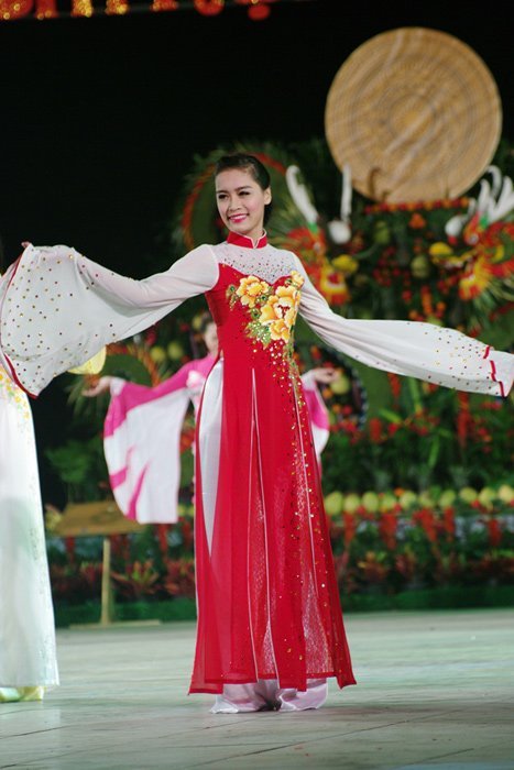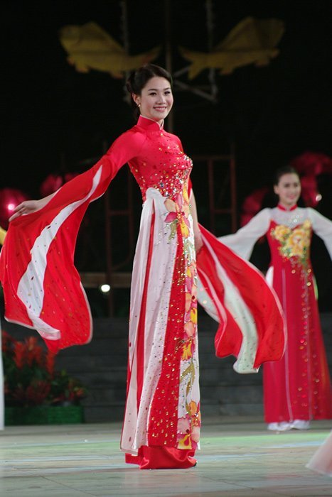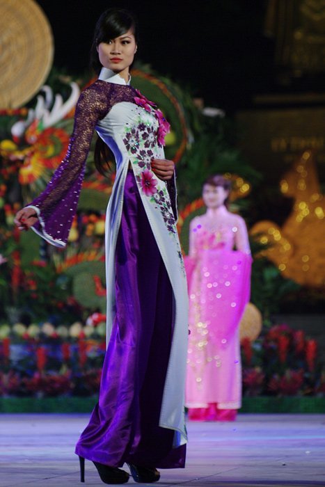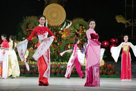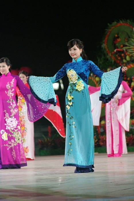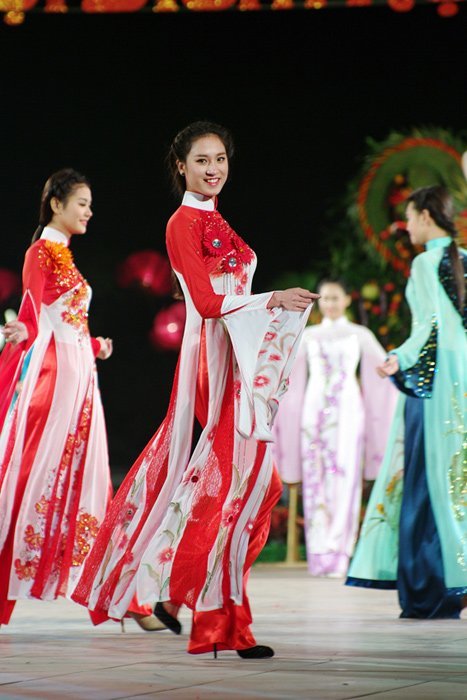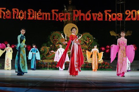 Phần trình diễn bộ sưu tập "Rạng ngời sắc hương" của nhà thiết kế Ngân An là tiết mục chủ đạo trong đêm nghệ thuật "Hà Nội, Phố và Hoa". Trên chất liệu lụa, voan chinfon và zen, các loài hoa đều được khoe sắc trên những tà áo dài cách điệu để chào đón năm mới.
