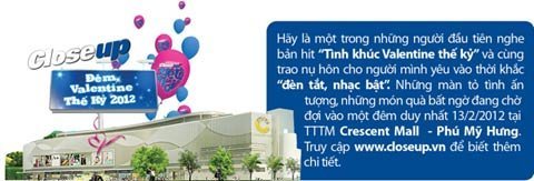 Cuộc chạy đua giành lấy cặp vé tham dự Đêm Valentine Thế Kỷ 2012 đang trở nên nóng hơn bao giờ hết khi mà những ngày Valentine đang đến rất gần. 19 cặp vé mời còn lại vẫn đang được đấu giá trên website closeup.vn đến hết ngày 11/02/2012. Liệu bạn sẽ là một trong 40 người may mắn đó?
