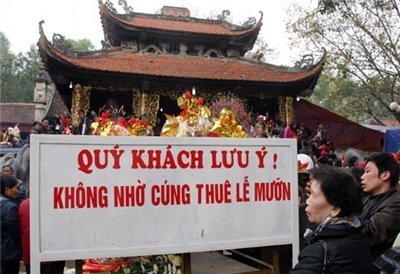 | Mặc dù Ban tổ chức đền Bà chúa kho đã đặt biển cảnh báo cho khách thập phương như thế này nhưng nhiều người vẫn không để ý (Ảnh: VNE) |
