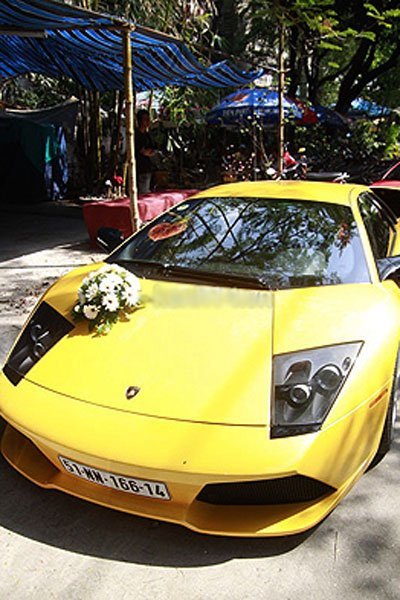| Trong đoàn xe còn có sự hiện diện của rất nhiều siêu xe thể thao như Lamborghini màu vàng (Ảnh: kênh14) |