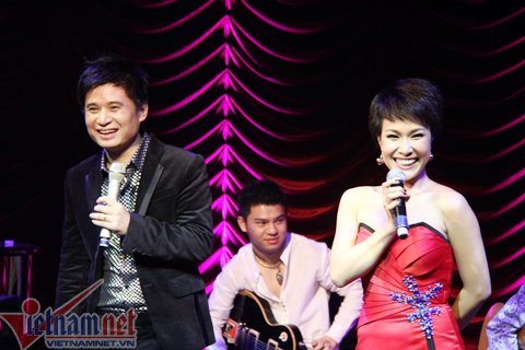 | Uyên Linh - Tấn Minh đều hứng khởi với sự kết hợp lần đầu tiên. |