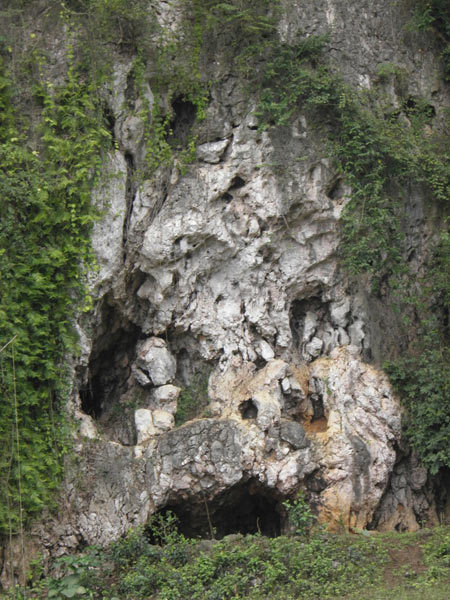 Vách đá hình mặt người nằm trong rặng núi đá vôi của xã Thượng Hoá, huyện Minh Hoá, tỉnh Quảng Bình.