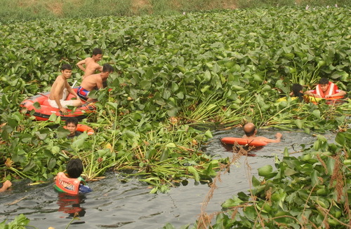 Nhìn bề mặt dòng kênh phủ một màu xanh lục bình phẳng lỳ, theo bà con nơi đây quả là mò kim đáy biển. Vậy mà họ vẫn làm không hề nao núng. Ông Tốt cho chúng tôi biết thêm, phương án cuối cùng là lặn sâu xuống và dùng dây giăng ngang đi từ đoạn trên xuống dưới. Nếu gặp xác sẽ vướng vào dây rồi sau đó đưa lên bờ.