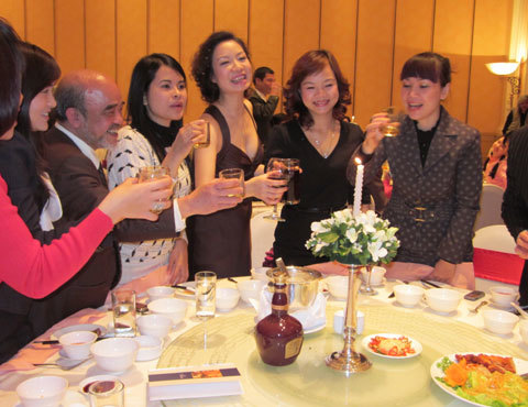 Trong tiếng nhạc du dương, không bánh gato, trên sân khấu được bày trí giản dị, chú rể Đặng Hùng Võ đã cùng nâng cốc và nói lời trăm năm với nghệ sỹ nhạc dân tộc Nguyễn Hồng Ánh.