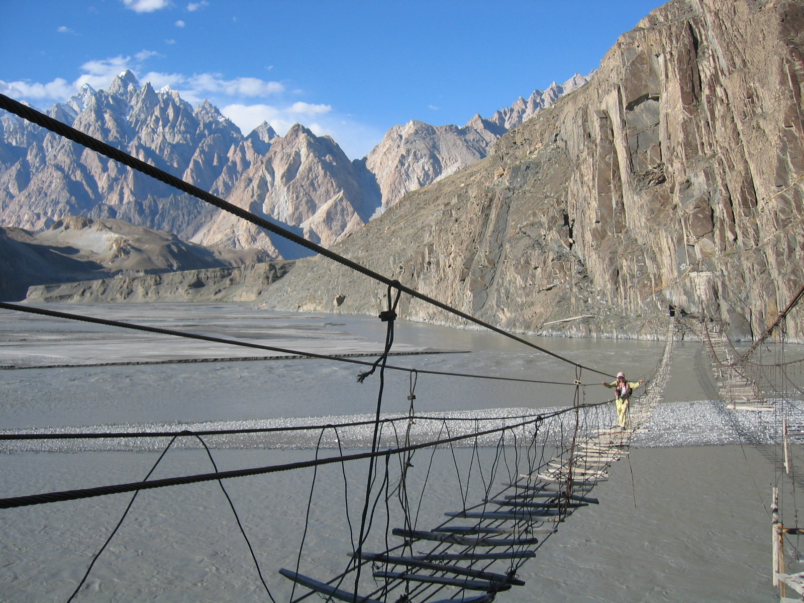 Hunza là cây cầu đặc biệt được bắc qua sông Hunza ở làng Hassaini miền Bắc Pakistan, nó được xây dựng bởi những sợi dây thép dài, trên đó là những thanh gỗ bắc ngang rất sơ sài.