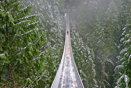 | Cầu treo Capilano được xây dựng năm 1889 dài tới trên 135m, cao 70m trên sông Capilano (Canada) |
