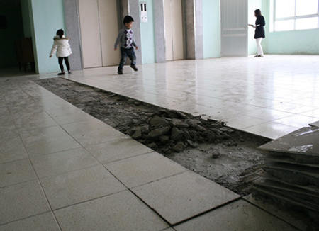 | Nền gạch tại nhiều tầng bị rạn nứt, bong tróc. |