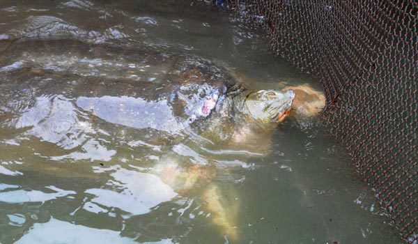Vây bắt thành công, đưa rùa vào 'bệnh viện'