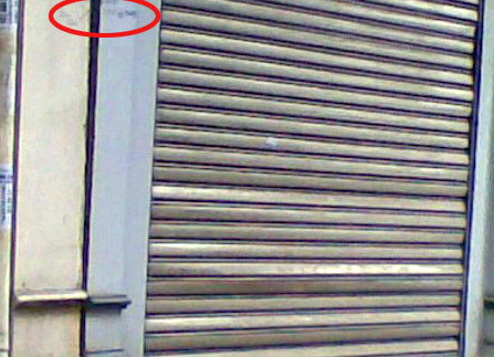| Vết nứt tại ngôi nhà 5 tầng trong ngõ 20 Huỳnh Thúc Kháng. Tại vị trí khoanh đỏ, vết nứt rộng 2,5cm. Càng lên cao vết nứt càng lớn và tòa nhà đã nghiêng về phía trước khoảng 20-30cm. Ngôi nhà không bị kẹp hai bên như một số người nhìn thấy qua ảnh mà thực chất là đứng một mình và có hai mặt tiền, vì thế khả năng đổ sẽ cao hơn |