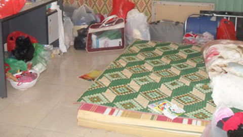 | Căn phòng chừng 20 m2 nơi các hộ bị di dời đang ở tạm. |