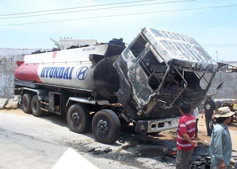 Vụ cháy đã làm 3 người phỏng nặng, hai trụ bơm xăng, một xe mô tô của khách và chiếc xe bồn chở bồn dầu của doanh nghiệp Thái Nhã bị thiêu trụi phần đầu.