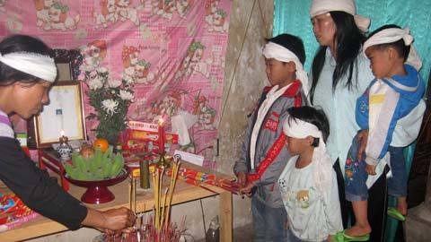Chúng tôi tìm về miền quê nghèo này vào sáng 13/4, trời sương mù phủ kín đường. Chị Trần Thị Tình (SN 1980) là vợ của anh Nguyễn Nhân Tú vừa tỉnh lại sau nhiều lần khóc lên ngất xuống khi ngày hôm qua mới tiễn chồng về nơi yên nghỉ.