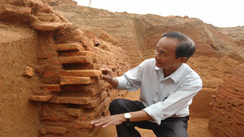 | PGS.TS Nguyễn Lẫn Cường: "Kết cấu lớp gạch xếp mái vòm trên hai ngôi mộ rất kỳ lạ" - Ảnh: Kiên Trung |