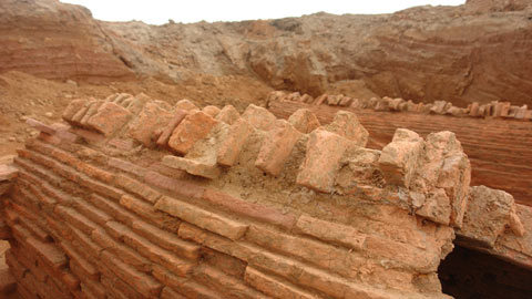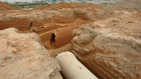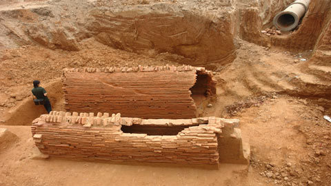 | Hai ngôi mộ cổ thời Hán được khai quật tại Nhật tảo - Ảnh: Kiên Trung |