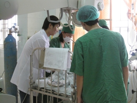| Cháu Linh đang được cấp cứu tại Bệnh viện Nhi Thanh Hoá - (Ảnh: Pháp luật - xã hội) |