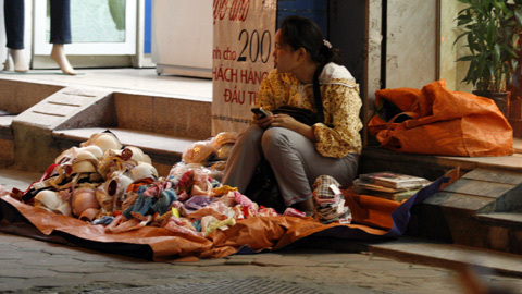 | Bà cụ già trên phố Cửa Nam quấn lại chiếc khăn len chống rét. |