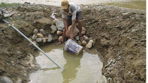sông, suối không còn cách nào khác là ra cạnh bờ suối, bãi sông đào tạm một