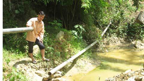 Khổ nhất là những hộ ở cheo leo bên sườn núi, bê được can nước lên đến nơi, rồi lại bê lên nhà sàn, mệt không thể nào kể hết. Bởi, hệ thống ống dẫn nước tự chảy của bản được lắp đặt từ đầu nguồn khe Líp, lâu nay việc khai thác vàng dọc khe đã làm cho đường ống bị rò rỉ và đứt gãy nhiều chỗ nên dòng nước bị ách tắc.
