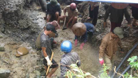 | Hệ thống đường ống dẫn nước bị đứt do sự tàn phá của “vàng tặc”. |