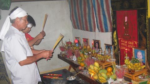 Bên chiếc bàn thờ xập xệ, đứa trẻ mới học lớp 7 đang chắp tay cầm nén hương cúi đầu cám ơn khi có người vào thắp hương cho cha mẹ, em mình.