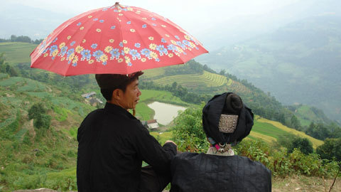 Xe chúng tôi từ từ “bò” lên đỉnh núi thì cũng là lúc hai tai tôi ù đặc. Xé tan màn sương mờ, vạt núi quanh tôi ngút ngàn hoa dại màu tím nhỏ li ti, xen lẫn những đồi hoa Tam Giác Mạch màu hồng nhạt... Mùa khô, không có nước, những thửa ruộng đẹp đẽ ấy chỉ để hoang hoặc trồng rau cải. Ngay khi mặt trời ló mặt ra khỏi những đám mây trắng như bông, thì vẫn có những làn sương mỏng tang bay qua nóc nhà sàn của người La Chí... Không gian trở nên huyền hoặc và đẹp hút hồn...