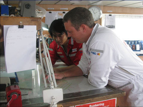 Thuyền trưởng trao đổi về công việc phải làm trong ngày |